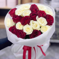 21 біла та червона троянда купити або замовити з доставкою за ціною 1999 грн в інтернет-магазині букетів та подарунків ProFlowers